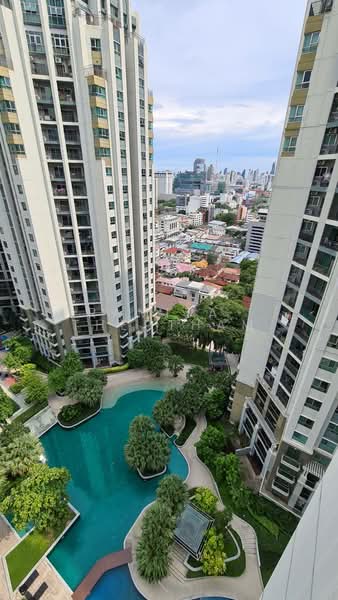 Modern 2-bedroom 1-bathroom condominium on the 20th floor of The Belle Grand Rama 9 building, in the international Huai khwang