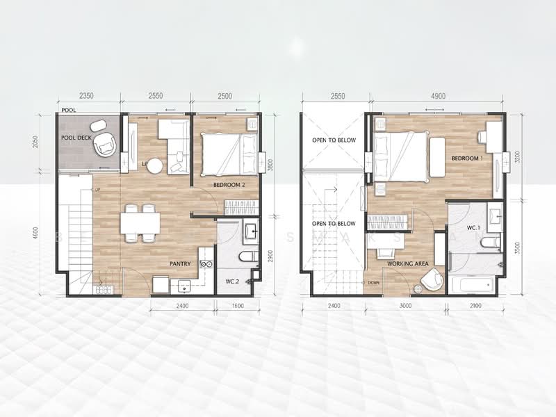 - 2 bedrooms, 2 bathrooms