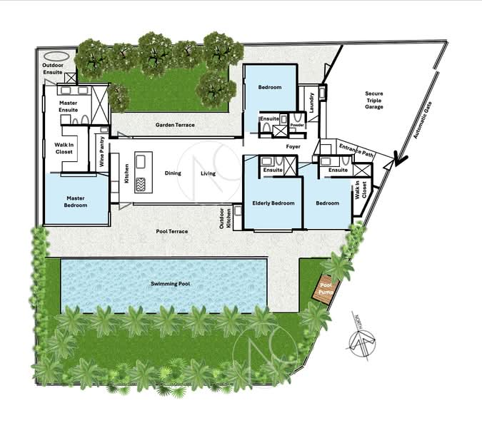 - 15-metre private swimming pool framed by palm gardens