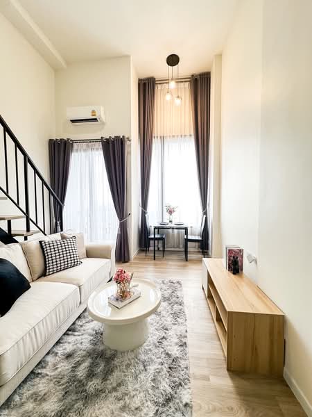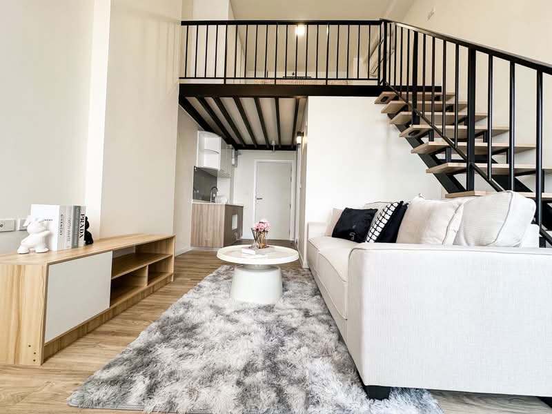 Near shopping malls and the BTS Skytrain, convenient transportation. 2-Story Duplex with 4.37-meter high ceilings.