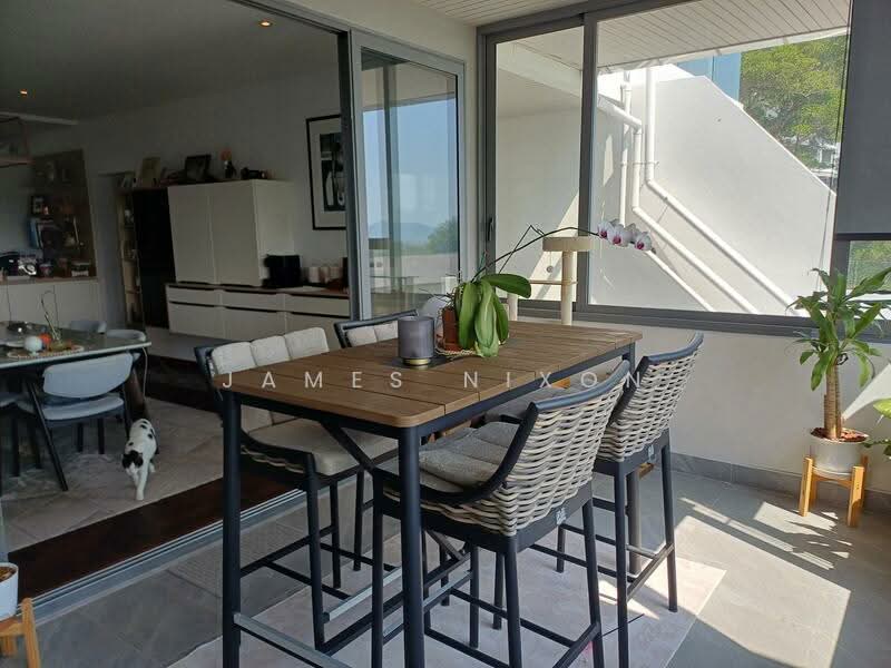 Truly a unique condo with the entrance at road level but soaring high above the golf courses and the Andaman Sea