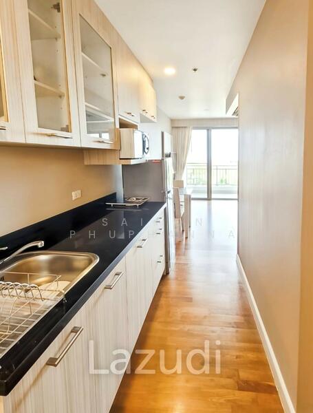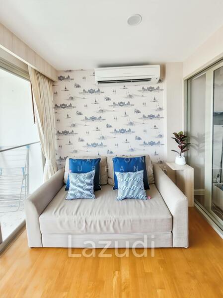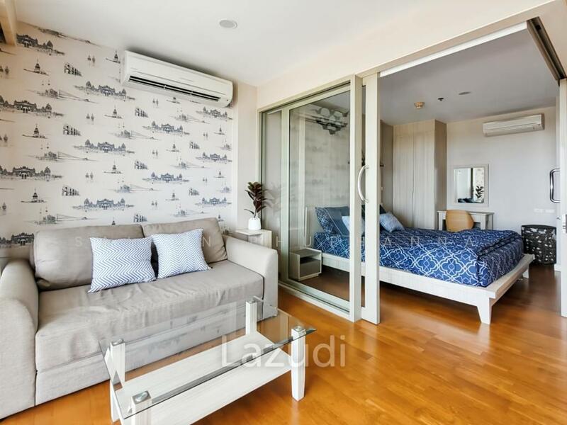This 42.4 square meter freehold condo in Boathouse Hua Hin offers a bright open-plan layout on the 5th floor. The home combines a comfortable living area, a defined bedroom zone, and a private balcony with an outdoor green and distant sea view.