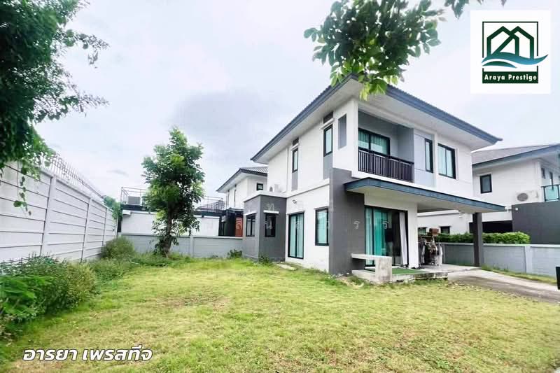 Britania Bangna Suvarnabhumi (Km. 26) is another large project that combines detached houses and semi-detached houses from Britania, a brand of low-rise housing projects in the ORIGIN group. This project is located on Temple Road. Bang Bo, convenient entry and exit from Bangna-Trad Road. The highlight of this project is the very large common area. Beautiful design, easy to use (similar to the common area in a condo) with details of the house design There will be a Thai kitchen outside the house for every house. No need to waste time and money on adding more later. There are 4 types of houses to choose from, with a usable area of 145-245 sq m. The starting price on the day we visited the project was 4.29 million baht.