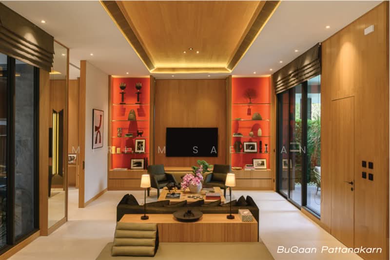 BuGaan Pattanakarn is a 3-storey single house in a modern luxury style, one of the Sansiri Luxury Collections that comes with an elevator and a private swimming pool on the 2nd floor of the house. Only 17 families are allowed to live there.