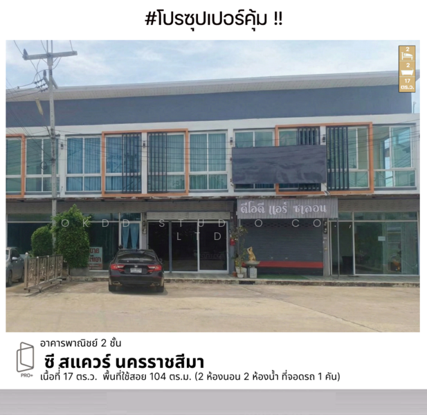 เนื้อที่ 17 ตร.ว. พื้นที่ใช้สอย 104 ตร.ม.