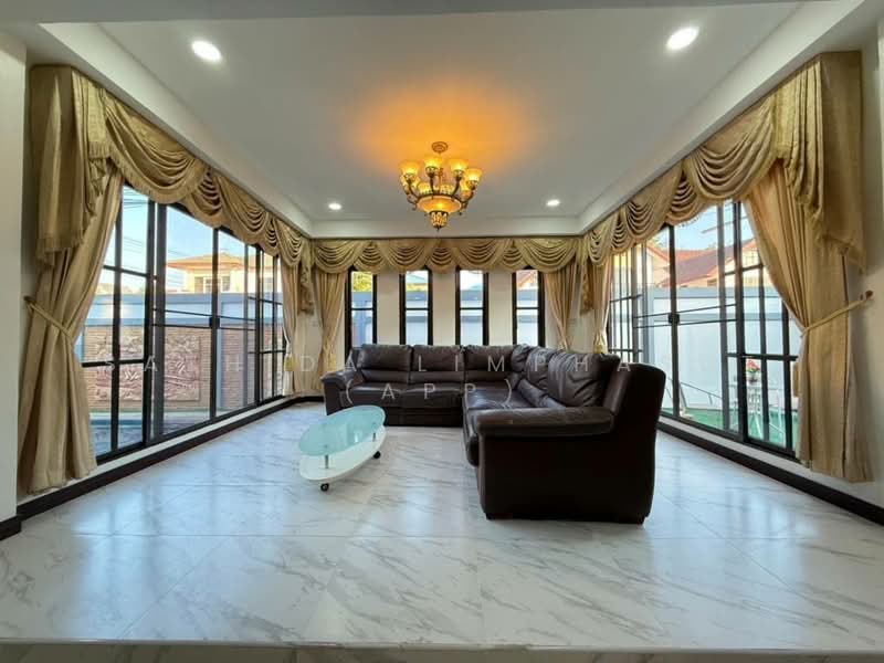 This is 2 Storey house for Sale and Rent in East Pattaya. Is Available in Thai Company Name Ownership, Sitting on 400 Sqm of land plot size, 200 Sqm of usable area, comes full furnished, decoration Thai modern style, European Kitchan, open plan living area, comfortable sofa, flat screen TV, sizable bedroom, built -in wardrobe, en-suite bathroom with bath tub. The house also has private swimming pool.
