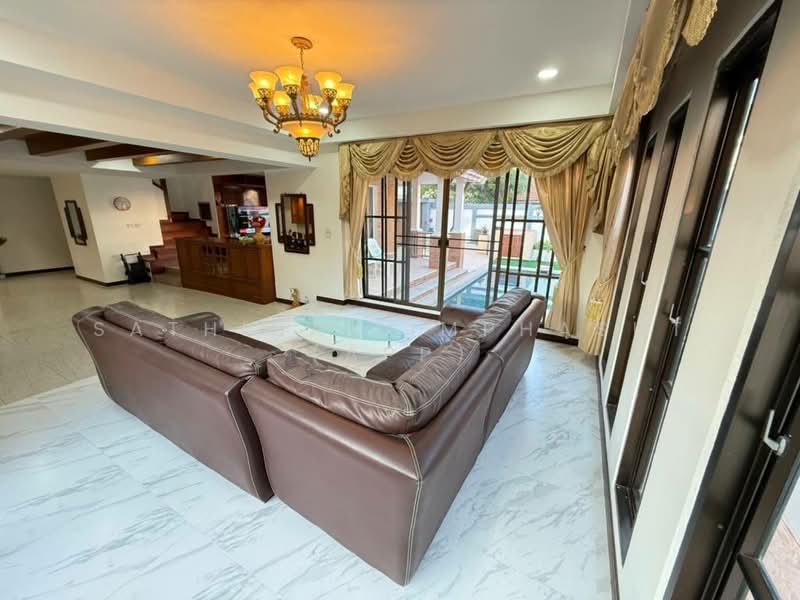 This is 2 Storey house for Sale and Rent in East Pattaya. Is Available in Thai Company Name Ownership, Sitting on 400 Sqm of land plot size, 200 Sqm of usable area, comes full furnished, decoration Thai modern style, European Kitchan, open plan living area, comfortable sofa, flat screen TV, sizable bedroom, built -in wardrobe, en-suite bathroom with bath tub. The house also has private swimming pool.