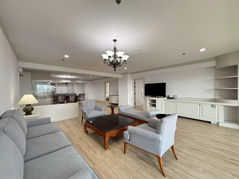 The 3-bedroom unit comes fully furnished and is spread over 265 square meters with high ceilings.
