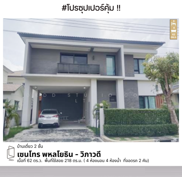 เนื้อที่ 62 ตร.ว. พื้นที่ใช้สอย 218 ตร.ม.