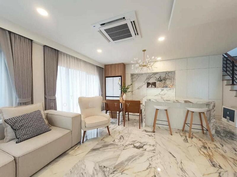 รายละเอียดเพิ่มเติม : บ้านบิวท์อิน แต่งสไตล์ modern พื้นห้องรับแขก ปูหินอ่อนอลาเบสกาโต้ จากอิตาลี island
