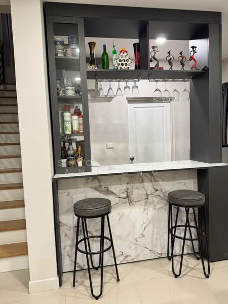 บิ้วอินตู้โชว์ และแขวนแก้วไวน์ทั้งชุดในห้องอาหาร