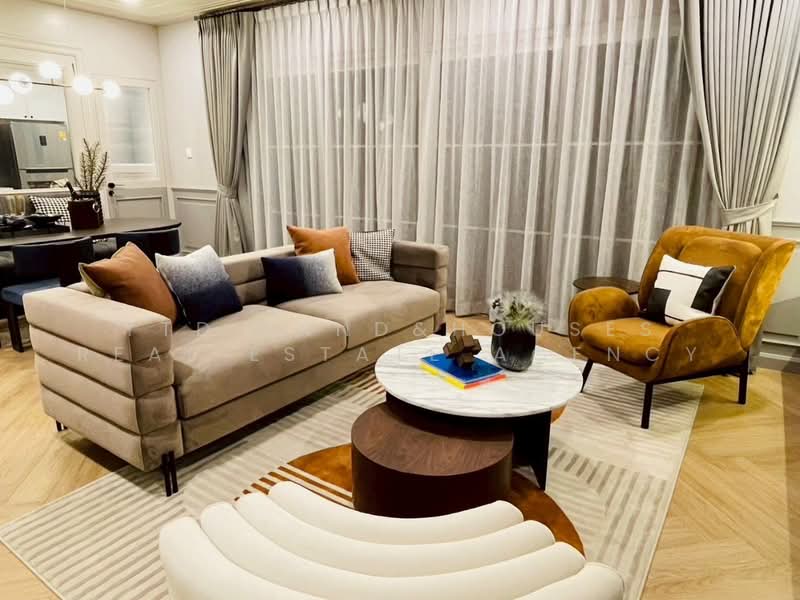 House for Rent, CHAIYAPRUEK Bangna KM.15 Show house, fully furnished, ready to move in. Beautiful plot, near the park and clubhouse.