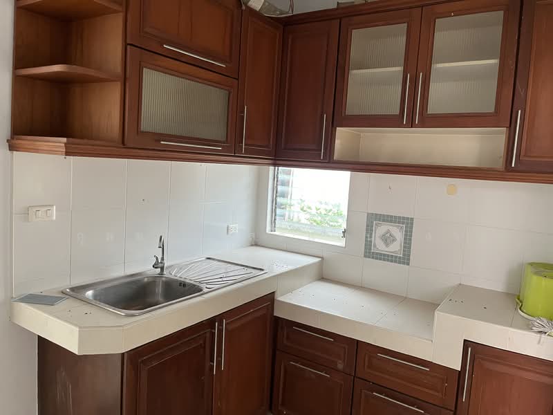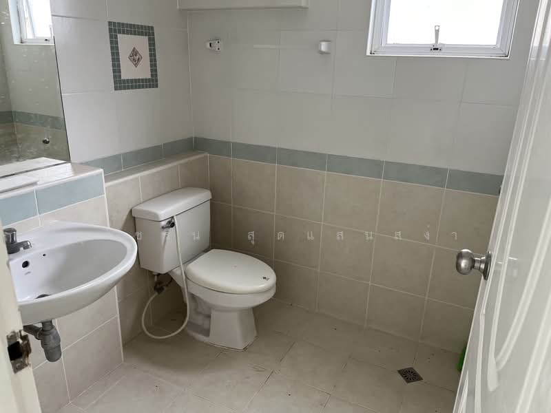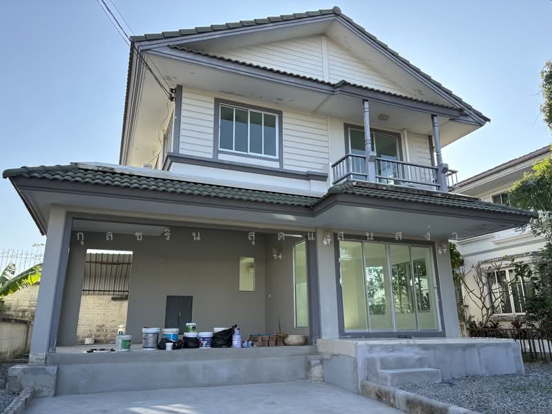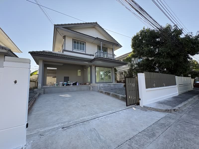 Two-story detached house for sale in Chaiyapreuk Bangna 2 Village (near Assumption University and Suvarnabhumi Airport). Close to ABAC Bangna, this 3-bedroom, 2-bathroom house features a living room and dining area, a built-in kitchen, and a spacious multi-purpose paved patio in the backyard surrounded by a rock garden, allowing for additional landscaping. There is parking space in front of the house and ample space for future expansion. The total usable area is 170 sq m on a 51.5 sq m plot of land. The surrounding area is natural, lush, and tranquil, ideal for relaxation.