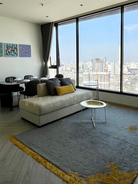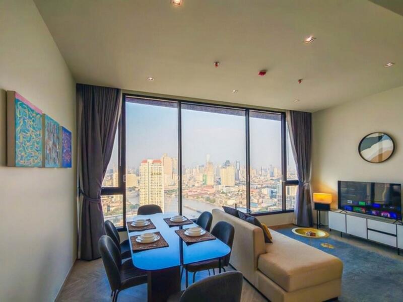 This modern 2 bedroom condo at Chapter Riverside is positioned on a very high floor, offering 65 square meters of elegantly designed living space with breathtaking river views and abundant natural light. The interior showcases sleek contemporary décor, complemented by top-tier finishes and premium furnishings that create a refined yet comfortable living environment.