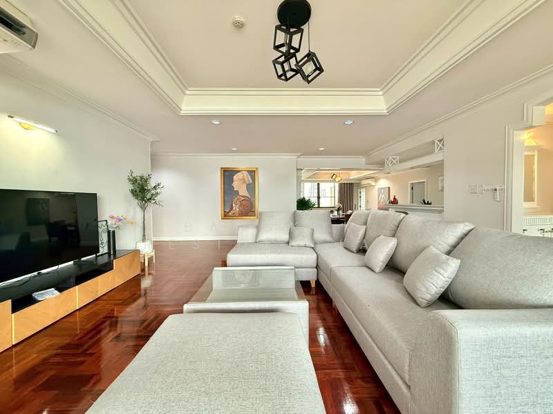 This generously sized 4 bedroom apartment in Phrom Phong with an expansive 385 square meters of thoughtfully redesigned living space, this fully furnished residence offers a perfect blend of modern elegance and everyday comfort, making it an ideal urban retreat for those seeking both luxury and convenience.