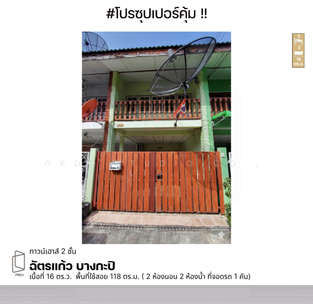 เนื้อที่ 16 ตร.ว. พื้นที่ใช้สอย 118 ตร.ม.