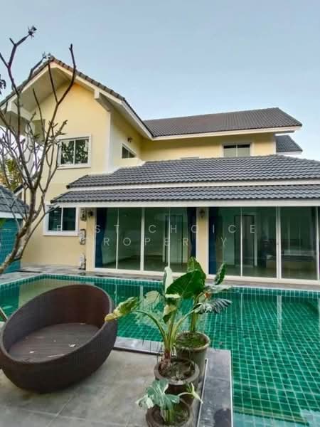 Large fully furnished pool villa for rent in Mueang district, near Nimmanhaemin, Chiang Mai University, Suan Dok Hospital, Ton Payom Market, and the airport (located in Chiang Mai Lakeland Village).