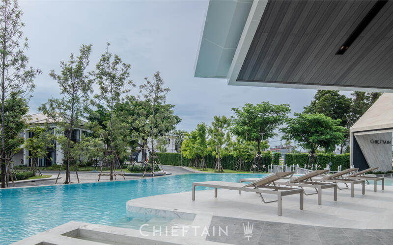 chieftain by patta is a premium luxury villa project located in nong plalai, bang lamung, chonburi, offering only 58 residences across 28-3-81.6 rai of land. designed with a balance of privacy, comfort, and functionality, the bedford villa features 306 sq.m. of usable space with 4 bedrooms, 6 bathrooms, 2 living rooms, a kitchen, dining area, storage, laundry, and washing area. with a 3-car garage, the home emphasizes modern family living with spacious interiors, practical amenities, and elegant design, ensuring comfort and quality of life. residents also enjoy community highlights such as a clubhouse, salt-chlorinated pool park, jogging track, and 24-hour smart security with double-gate system.