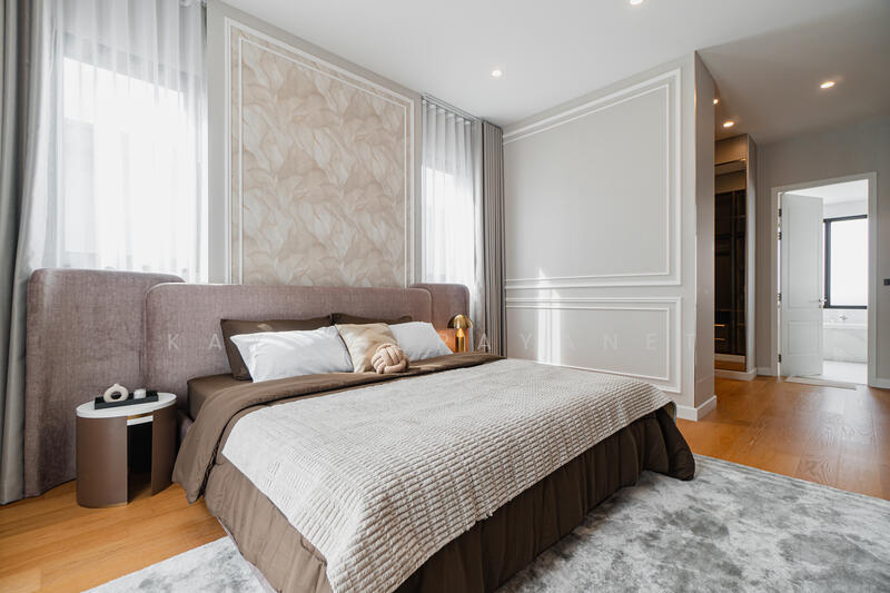 CINQ ROYAL Krungthep Kreetha, a 3-storey super luxury detached house, which is a new flagship project of Asset Five, located on an area of almost 29 rai on new Krungthep Kreetha Road. Only 48 private units, with 2 house styles to choose from, on a land area of 117.5 - 222.3 square wa (sq m), with a usable area of 705 - 1,015 square meters (sq m), price 50-100 million baht per unit. Unit