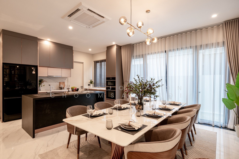 CINQ ROYAL Krungthep Kreetha, a 3-storey super luxury detached house, which is a new flagship project of Asset Five, located on an area of almost 29 rai on new Krungthep Kreetha Road. Only 48 private units, with 2 house styles to choose from, on a land area of 117.5 - 222.3 square wa (sq m), with a usable area of 705 - 1,015 square meters (sq m), price 50-100 million baht per unit. Unit