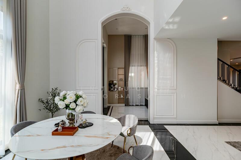 CINQ ROYAL Krungthep Kreetha, a 3-storey super luxury detached house, which is a new flagship project of Asset Five, located on an area of almost 29 rai on new Krungthep Kreetha Road. Only 48 private units, with 2 house styles to choose from, on a land area of 117.5 - 222.3 square wa (sq m), with a usable area of 705 - 1,015 square meters (sq m), price 50-100 million baht per unit. Unit