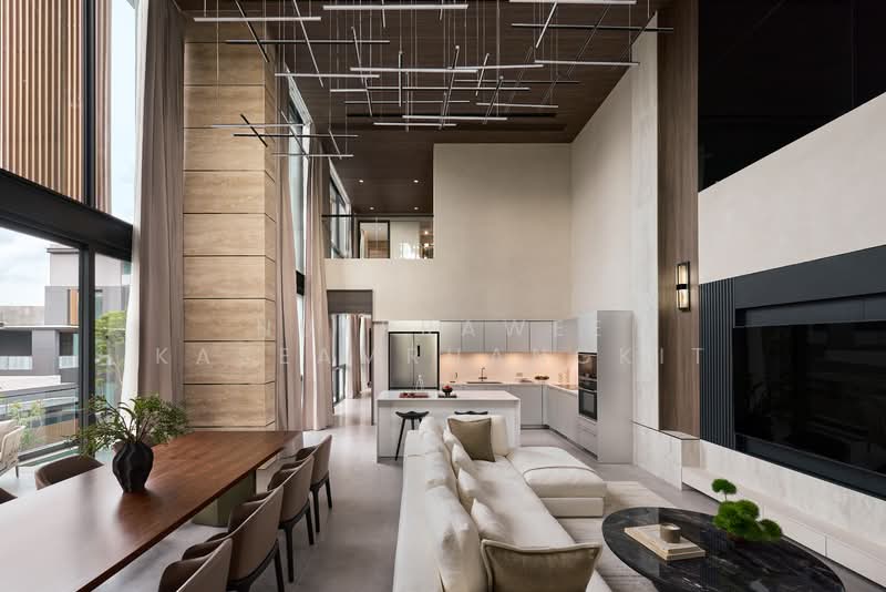 Cira Residences, a 3.5-story detached house in the heart of the city, Ekkamai-Ramintra area, valued at 125-200 million baht, from The Creators HQ, is designed for a small family. Only nine houses are available, each house on a plot of over 100 square wah and features a private pool villa. Today's highlight is the AZURE model home. Let's take a look at some of its highlights. Location: This detached house in the city along the expressway near Rama 9 Road offers high potential, with land prices increasing yearly. Easy access to Thonglor-Ekkamai and Sukhumvit Roads, and the expressway connects to international schools in many locations. Surrounded by shopping centers, it offers a complete lifestyle experience, making it convenient for children to attend school and for parents to enjoy a comfortable lifestyle. Unique Features: Four house designs, including only nine houses in the project, offer ultimate privacy, a swimming pool, and a private elevator. Two-story, spacious bedrooms, 4-6 bedrooms, covered parking, and 2 maid's rooms, on a large plot of 100 square wah or more. Services and Security: 24-hour security, CCTV cameras throughout the project and 7-8 locations per house, magnetic sensors, personal concierge service, home maintenance, a housekeeper to assist with waste management to prevent garbage trucks from entering the project, and door-to-door delivery. Complete living comfort.
