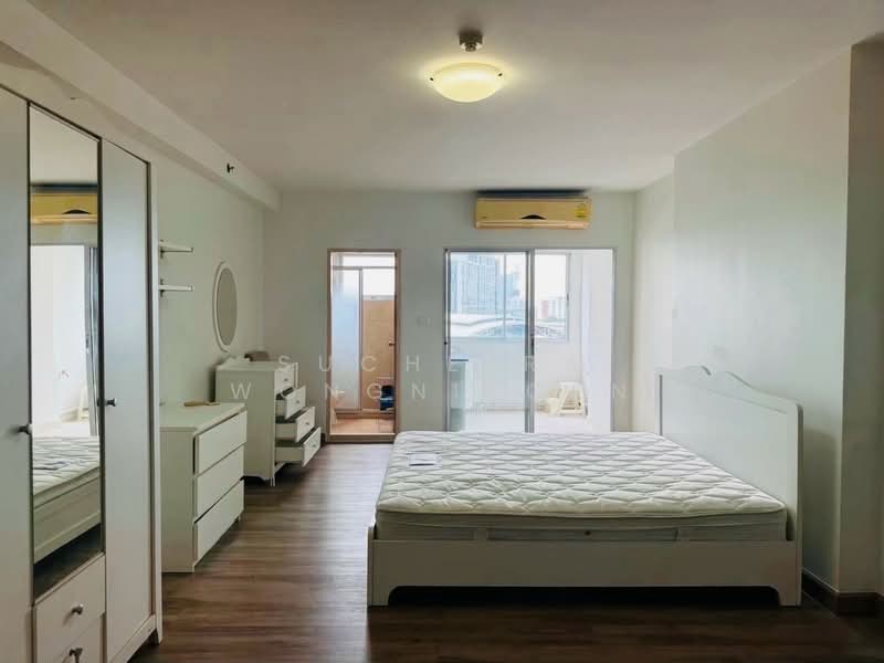 Prime location on Sukhumvit Road, easy to find food, convenient travel, surrounded by amenities, skytrain, buses, shopping centers, hospitals, schools, and others