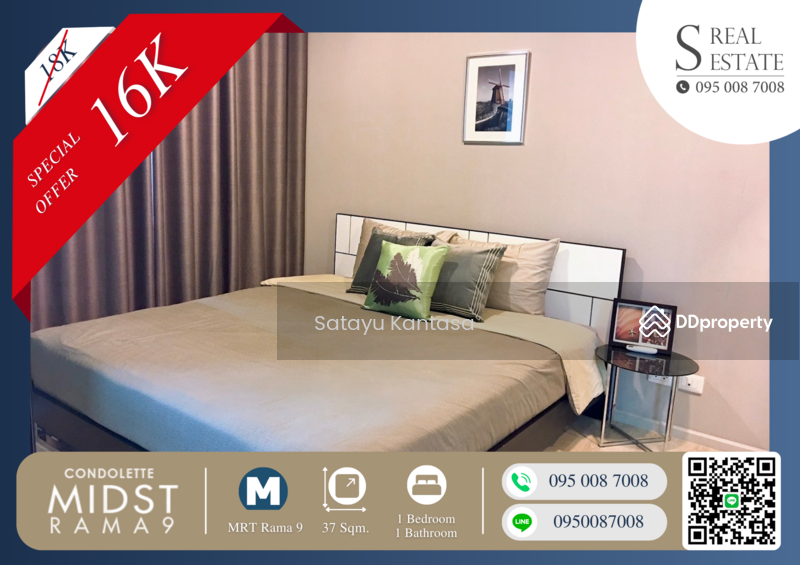 Best Price Ever!! The room and balcony are very big!! Beautiful room!! Fully furnished!! Condolette Midst Rama9 next to MRT Rama 9. If interested, contact quickly! Before the room is reserved!!