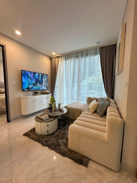 The unit is positioned on the 44th floor and offers a sea view that creates a striking sense of openness. In addition, the 77.8 square meter layout provides generous living space with a smooth and practical flow. As a result, the unit suits long term living, personal use, or buyers seeking a spacious residence in a premium beachfront tower. Natural light enters easily and enhances the interior atmosphere.