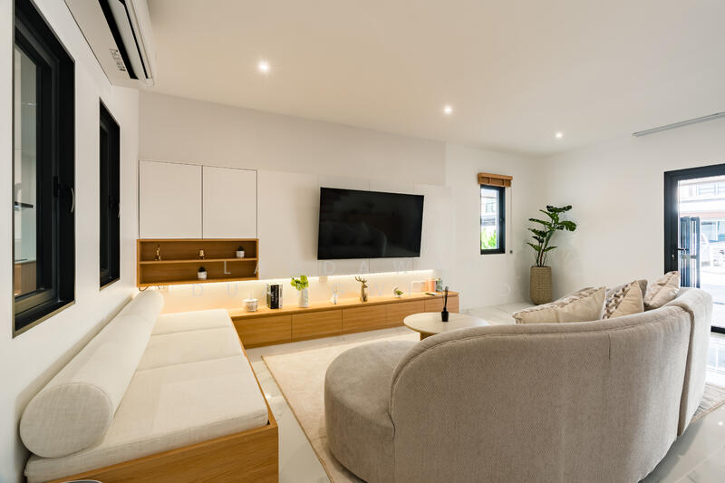 This beautifully crafted modern pool villa offers a perfect blend of contemporary architecture, warm natural materials, and resort-style living. Designed with clean lines, large Euro Profile glass doors and windows, and wooden ceiling accents, the villa creates a bright, airy atmosphere with a seamless indoor–outdoor flow.