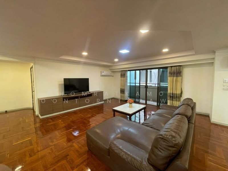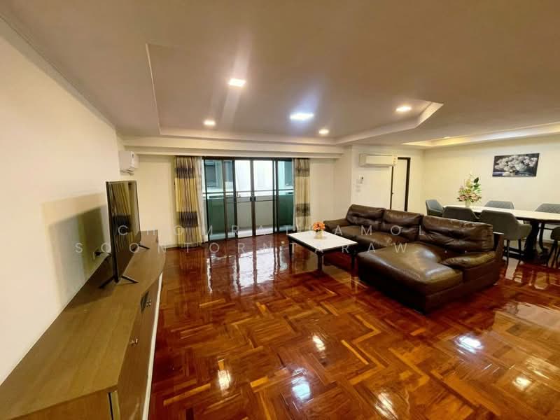 This large 3-bedroom, 4-bathroom condo offers a generous 280 square meters of interior space on the 4th floor of D.H.Grand Tower in Wattana, Bangkok. The home presents a professional overview of comfortable family living in a low-rise project with 14 floors.