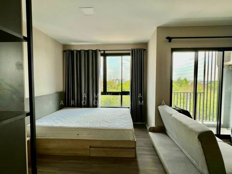 D Condo Hideaway-Rangsit, the youngest condo brand from Sansiri. It is designed to meet the needs of students, working people, and investors. It is a 3-building low-rise condo. Although there are many condo projects to choose from in this area, we think that this place is interesting and different from others as follows: Privacy in residence : This can be seen from the design that separates the common building from the rooms. Therefore, the usage looks clearly proportional and the atmosphere within the project does not look cramped from the placement of the buildings not exactly parallel to each other, so there is no need to sacrifice privacy for the rooms in the opposite building. Wide-fronted rooms : This is a rare item for economy-class condos because most projects in this price range tend to design their plans as narrow-fronted, long-shaped rooms to have a large number of rooms. This makes the 'wide-fronted rooms' of this project receive more natural light and make the rooms look more open and airy. Fully Furnished : Fully furnished and now there is a promotion to add electrical appliances such as TV, refrigerator, microwave and water heater. Location : Located in the alley opposite Chiang Rak 2 Gate and the U Square zone, which is the main shopping area for Thammasat University students. This alley is the alley where many senior condos in the dcondo family were built, which were pioneers of condos near the university in the early days. This project is located at the very end of the alley, about 700 meters into the alley. It is suitable for those looking for a more peaceful and private atmosphere, but you will have to travel by car, motorcycle, or shuttle service to and from the university.