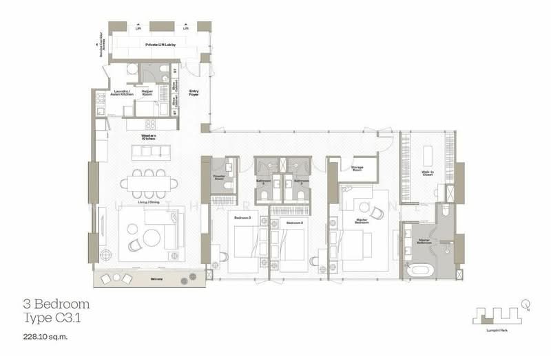 Fully furnished 3 bedrooms, 4 bathrooms condo for sale with a floorsize of 228.1 squaremeters, located on the 31st floor, at Dusit