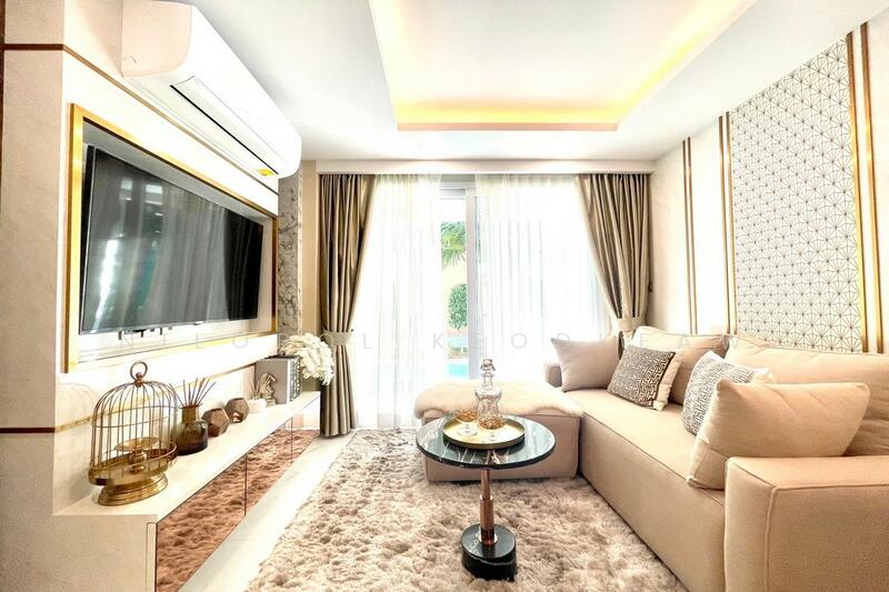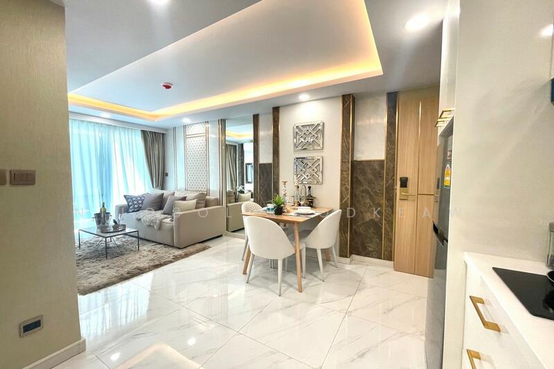 Experience luxury at Dusit Grand Park 2, Jomtien, Pattaya Beautiful, fully furnished, 2 bedroom 2 bathroom condo, Boasts 62 sq.m. space on 3nd floor, European kitchen, gym, underground parking. Enjoy 24-7 security, a kids playground. Perfect for modern living