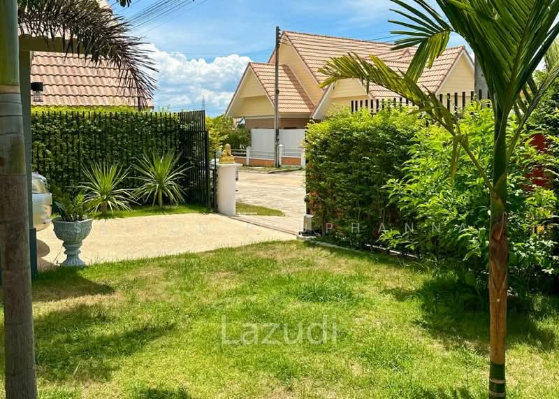 This single-storey villa in Thap Tai, Hua Hin offers a bright modern home. It is a new freehold property in Dusita Lakeside Village 2 with 119 sqm of interior space. The land size is 364 sqm with private gardens and a pool.