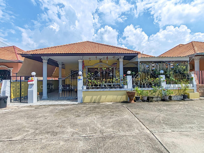 The house is tastefully renovated with a functional layout, featuring a multi-purpose/utility room and covered parking. The village offers a communal swimming pool and 24-hour security, ensuring privacy and safety for residents.