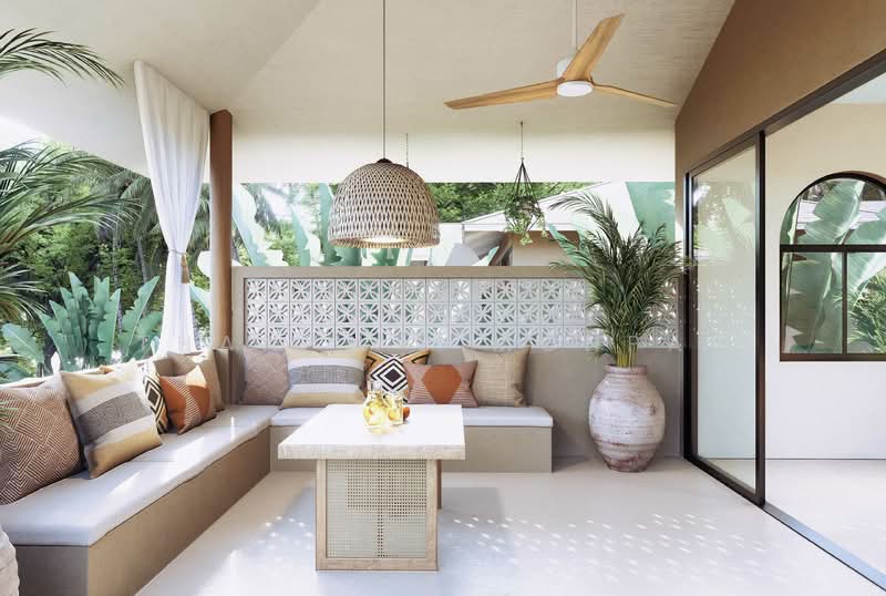 The villa features a spacious bedroom, a modern bathroom, and an open-plan living area that creates a bright and welcoming atmosphere. Large openings allow natural light and greenery to become part of the living experience, making it easy to imagine slow mornings, indoor-outdoor living, and quiet evenings surrounded by nature.