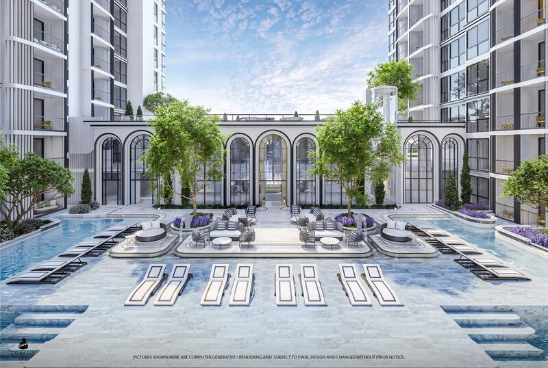 Embassy Life, an upcoming high-rise residential development poised to redefine luxury living in Jomtien, Pattaya. Scheduled for completion in December 2029, this project seamlessly blends classic elegance with modern innovation, offering residents an unparalleled lifestyle experience. Prime Location Situated on Jomtien 2nd Road, between Atlantis Condo Resort Pattaya and Ban Pha Rimhad village, Embassy Life provides residents with convenient access to pristine beaches, vibrant local markets, and a variety of dining and entertainment options. Architectural Excellence Embassy Life features a distinctive cascading design across three interconnected sections: •Central Section: Rising to 24 floors, offering panoramic views of the sea and cityscape. •Side Sections: Ranging from 12 to 18 floors, maximizing natural light and enhancing the sense of space. Exquisite Residences The development offers a range of meticulously designed units to cater to diverse preferences: •Studios: 22.6 sqm, starting at 2.09 million THB. •1-Bedroom Units: 34–51 sqm, starting at 2.89 million THB. •2-Bedroom Units: 51–77.5 sqm, starting at 4.49 million THB. Exclusive Lifestyle Amenities Embassy Life is designed to provide a holistic living experience with an array of world-class facilities: •Ground Floor: Grand lobby (302 sqm) and two retail shops for everyday conveniences. •Second Floor: A 70-meter swimming pool equipped with a hydro-flow swim trainer, island-inspired water terraces with a drink bar, and a game zone suitable for all ages. •Third Floor: Fully equipped gym, cave pool, and holistic spa for ultimate relaxation. •Fourth Floor: Floating yoga deck on a lotus pond, open-design jacuzzi, and lush garden spaces. •Rooftop (24th Floor, Central Section): Infinity swimming pool offering breathtaking sea and city views. •Basement Wellness Haven: Features such as a crystal maze jacuzzi, Himalayan salt cave for wellness therapy, and a continuous-flow pool room.