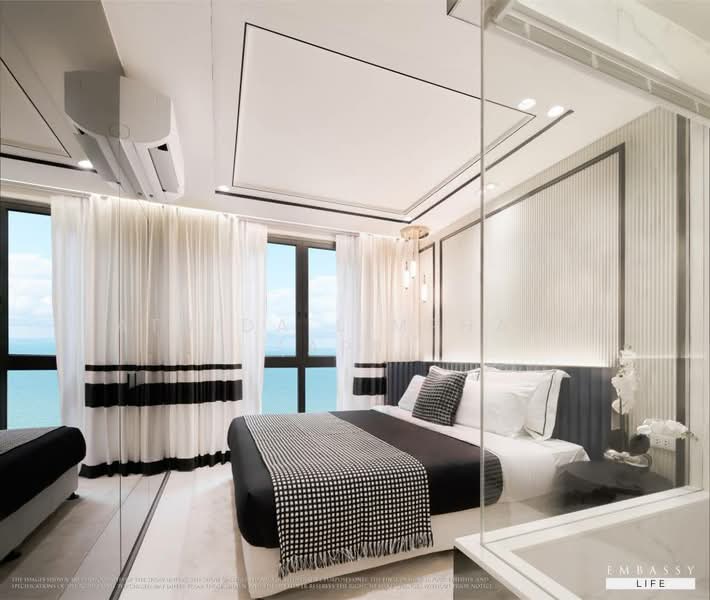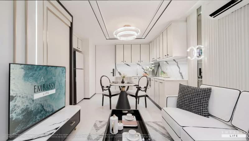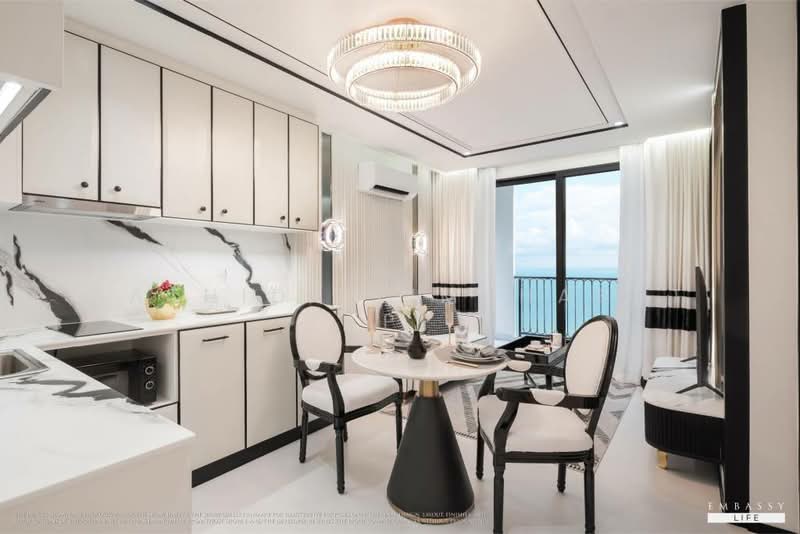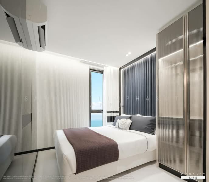Embassy Life, an upcoming high-rise residential development poised to redefine luxury living in Jomtien, Pattaya. Scheduled for completion in December 2029, this project seamlessly blends classic elegance with modern innovation, offering residents an unparalleled lifestyle experience. Prime Location Situated on Jomtien 2nd Road, between Atlantis Condo Resort Pattaya and Ban Pha Rimhad village, Embassy Life provides residents with convenient access to pristine beaches, vibrant local markets, and a variety of dining and entertainment options. Architectural Excellence Embassy Life features a distinctive cascading design across three interconnected sections: •Central Section: Rising to 24 floors, offering panoramic views of the sea and cityscape. •Side Sections: Ranging from 12 to 18 floors, maximizing natural light and enhancing the sense of space. Exquisite Residences The development offers a range of meticulously designed units to cater to diverse preferences: •Studios: 22.6 sqm, starting at 2.09 million THB. •1-Bedroom Units: 34–51 sqm, starting at 2.89 million THB. •2-Bedroom Units: 51–77.5 sqm, starting at 4.49 million THB. Exclusive Lifestyle Amenities Embassy Life is designed to provide a holistic living experience with an array of world-class facilities: •Ground Floor: Grand lobby (302 sqm) and two retail shops for everyday conveniences. •Second Floor: A 70-meter swimming pool equipped with a hydro-flow swim trainer, island-inspired water terraces with a drink bar, and a game zone suitable for all ages. •Third Floor: Fully equipped gym, cave pool, and holistic spa for ultimate relaxation. •Fourth Floor: Floating yoga deck on a lotus pond, open-design jacuzzi, and lush garden spaces. •Rooftop (24th Floor, Central Section): Infinity swimming pool offering breathtaking sea and city views. •Basement Wellness Haven: Features such as a crystal maze jacuzzi, Himalayan salt cave for wellness therapy, and a continuous-flow pool room.