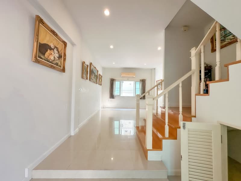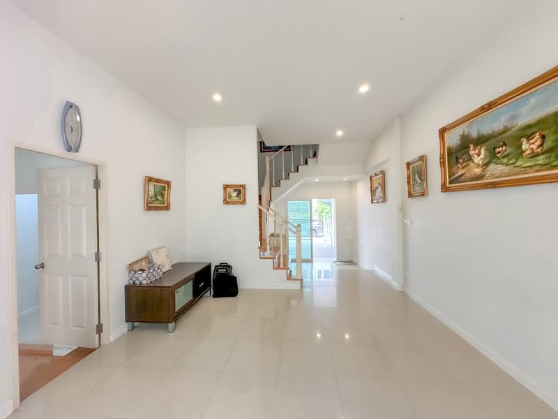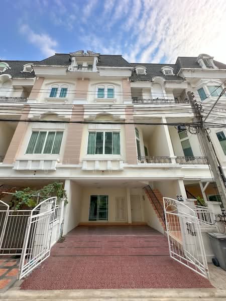 Selling a 3.5-story townhome in Euronova Village, Soi Ladkrabang 24/1. This is a large (Fresco) type house designed for those who appreciate a bright and airy feel, with extra-high ceilings of 4 meters, giving the feeling of living in a luxury detached house.