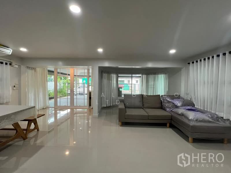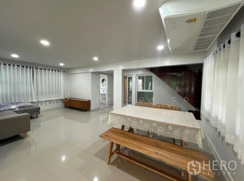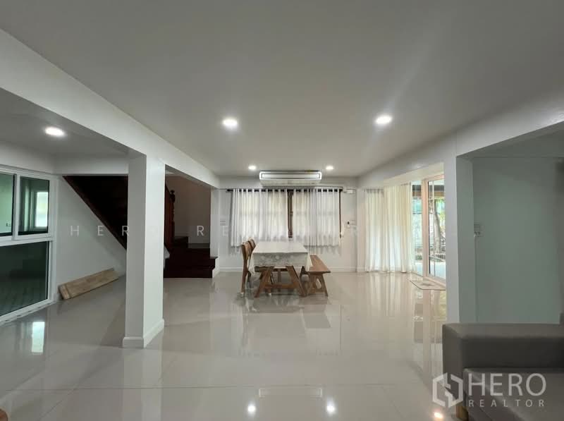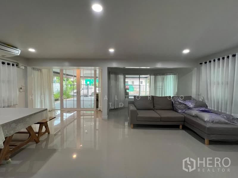 This family-friendly detached house for rent in Sammakorn Village Ramkhamhaeng is located in the Nuan Chan area of Saphan Sung, Bangkok. The property offers 230 sqm of usable living space on a 70 sq wah land plot, providing comfortable space for families in a peaceful residential environment.