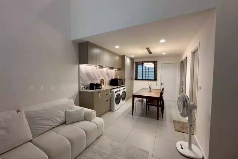 Modern 3-storey townhome with a double-volume ceiling, offering a bright and spacious living environment. Located in Nue Verse Krungthep Kreetha, a prime residential area with convenient access to international schools and community malls.