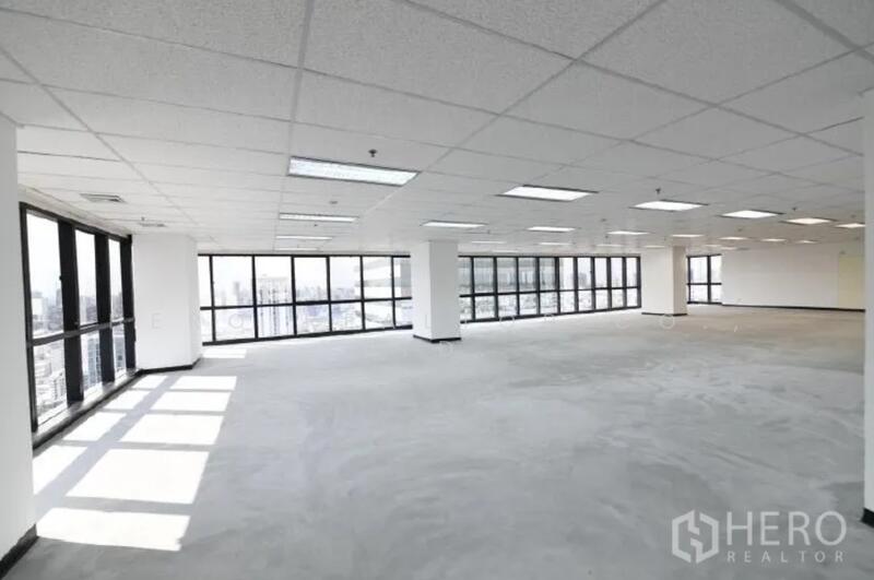 This 234 sq.m open-plan office in Huai Khwang offers excellent flexibility for growing teams, with wraparound windows providing abundant natural light and city skyline views.
