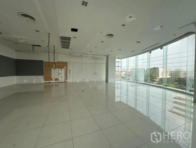 This 340 sq.m retail space is located in the vibrant Ratchadaphisek–Din Daeng area, offering strong visibility and brand presence. Situated in a modern building, the unit features a flexible open-plan layout with polished tile flooring, high ceilings, and full-height curved glass that fills the space with natural light.