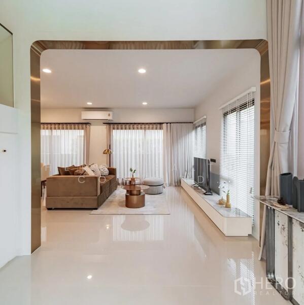 This modern 4-bedroom detached house at Burasiri Krungthep Kreetha offers refined family living in a prime Hua Mak / Bang Kapi location, with convenient access to the Yellow Line.