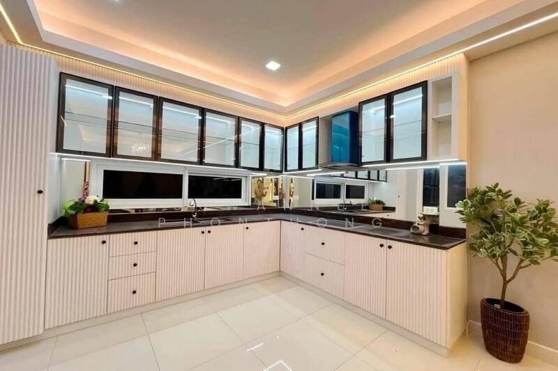This spacious and luxurious 5 bedroom, 5 bathroom house is located in Central Park village, Nong Prue, Pattaya. With a total land size of 100 sq.w. and usable area of 315 sq.m., this house boasts a stunning pool view from its 2 floors. Fully furnished with facilities including private pool, this beautiful home is perfect for your family