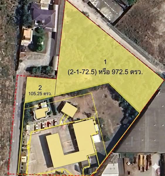 Total area: 2-2-77.75 Rai (1,077.75 sq.w.) Transportation is effortless with a wide frontage of 104 meters along the local road. The surrounding environment is a residential and commercial area, with most of the vicinity developed into housing projects interspersed with vacant land awaiting development. This plot is ideal for small-scale residential projects, home offices, or logistics warehouses.