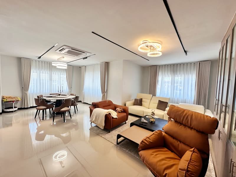 Set on a generous 180 square wah land plot, this two-storey detached villa features 5 spacious bedrooms and 5 bathrooms, ideal for large families or those who enjoy hosting guests. The home comes fully furnished with elegant European-style interiors, creating a sophisticated and comfortable living environment.
