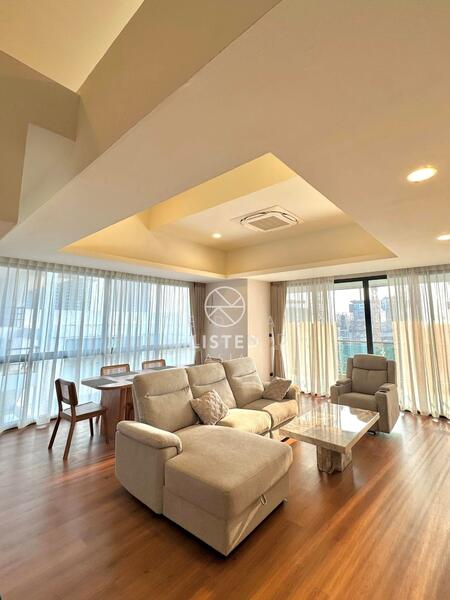 Thai Name Ownership / area of 140 sq m. Spacious 2-bedroom 3-bathroom condo / Located on the 7th floor (top floor) with a large balcony offering stunning sea views. The unit features an open living and dining area, perfect for relaxation or entertaining guests. Additionally, there is a loft space that can be used as an extra bedroom or multipurpose area, providing flexibility in how you use the space. The condo comes fully furnished, including a 3-seater electric reclining sofa, 1 electric reclining lounge chair, a 6-seater teak dining table set, and 2 mattresses with bases. It is equipped with 2 4-way cassette air conditioners, 2 ceiling-mounted air conditioners, and 1 9000 BTU air conditioner, ensuring comfort throughout the year. The unit also includes a washing machine, refrigerator, and 3 water heaters (one for each bathroom) for added convenience. This condo is located in a desirable area, offering a perfect blend of modern living and luxury, with beautiful views and all the necessary amenities.