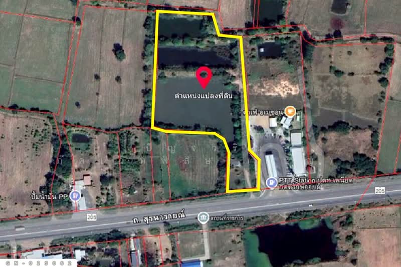 The land is located on Suranarai Road, has an existing pond and natural earthen embankment. Suitable for a garden house, restaurant, or resort. The land can be filled or landscaped as desired.